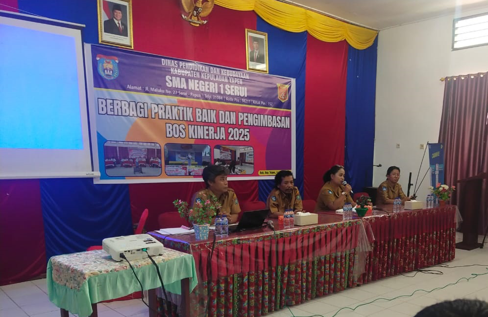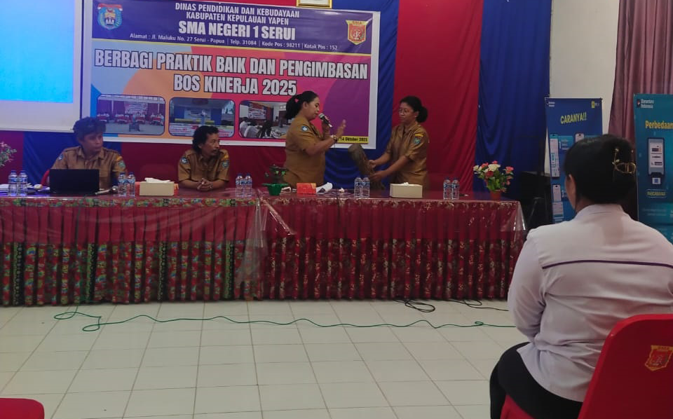 Serui, 14 Oktober 2025 — SMA Negeri 1 Serui melaksanakan kegiatan “Berbagi Praktik Baik dan Pengimbasan BOS Kinerja 2025” bertempat di Ruang MGMP SMA Negeri 1 Serui. Kegiatan ini dihadiri oleh perwakilan sekolah imbas serta dewan guru SMA Negeri 1 Serui.
